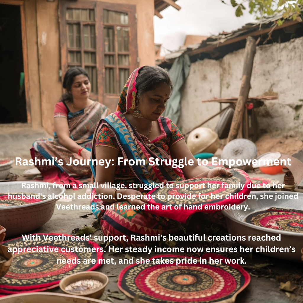 With every purchase from Veethreads, customers become part of this heartwarming story, contributing to a brighter future for the women artisans who breathe life into each hand-embroidered masterpiece.