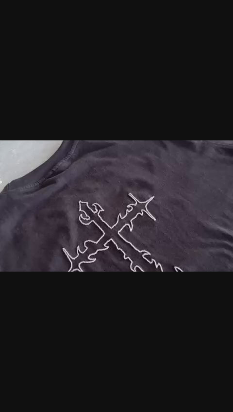 Eternal Cross Hand-Embroidered Black Oversized T-Shirt – Gothic Streetwear