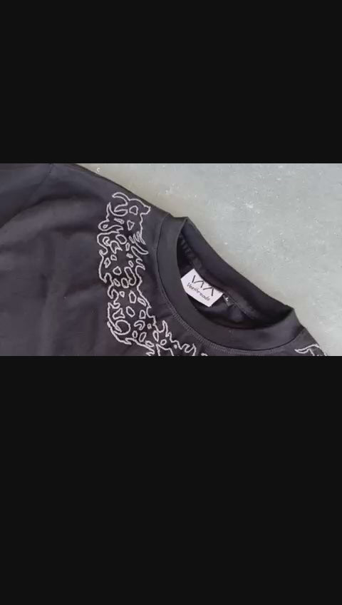 Step into bold streetwear with the Eternal Cross Hand-Embroidered Unisex Oversized T-Shirt, a premium black tee that fuses artisan embroidery with modern gothic fashion.